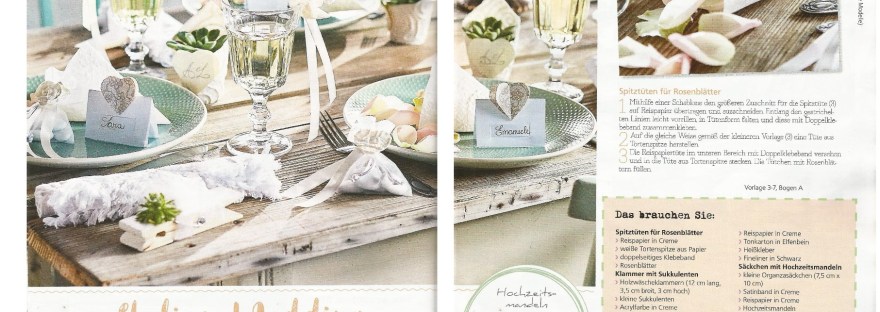 A fine estate mi è stato commissionato un lavoro creativo da parte di una rivista tedesca 'Meine Bastelwlt'. Dal gusto shabby e romantico il tavolo decorato e apparecchiato per un'idea di ricevimento nuziale è stato arricchito con le mie creazioni. Realizzate a mano le mie idee in carta per decorare il tavolo sono state fotografate… Continua a leggere Decorazioni delicate per il matrimonio