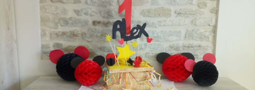 Un anno, un compleanno importante! Festa tema Topolino: la scelta dei colori nero, rosso, giallo. Ci siamo occupati del progetto per la festa assieme ai genitori del piccolo festeggiato e creato a mano le decorazioni Topolino!